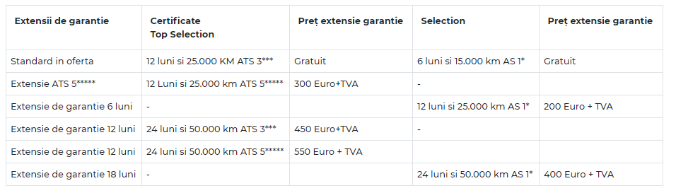 Certificat de garanțieTransfer gratuit între locațiile ATS